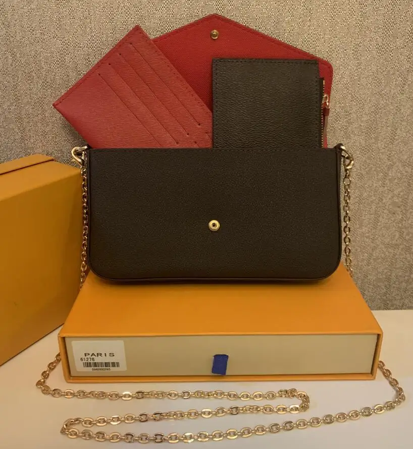 LX 2021 3 uds las mujeres bolsos de hombro correa de cadena cuerpo señoras solapa monedero bolsas con caja de bolsa de polvo de diseñador de moda